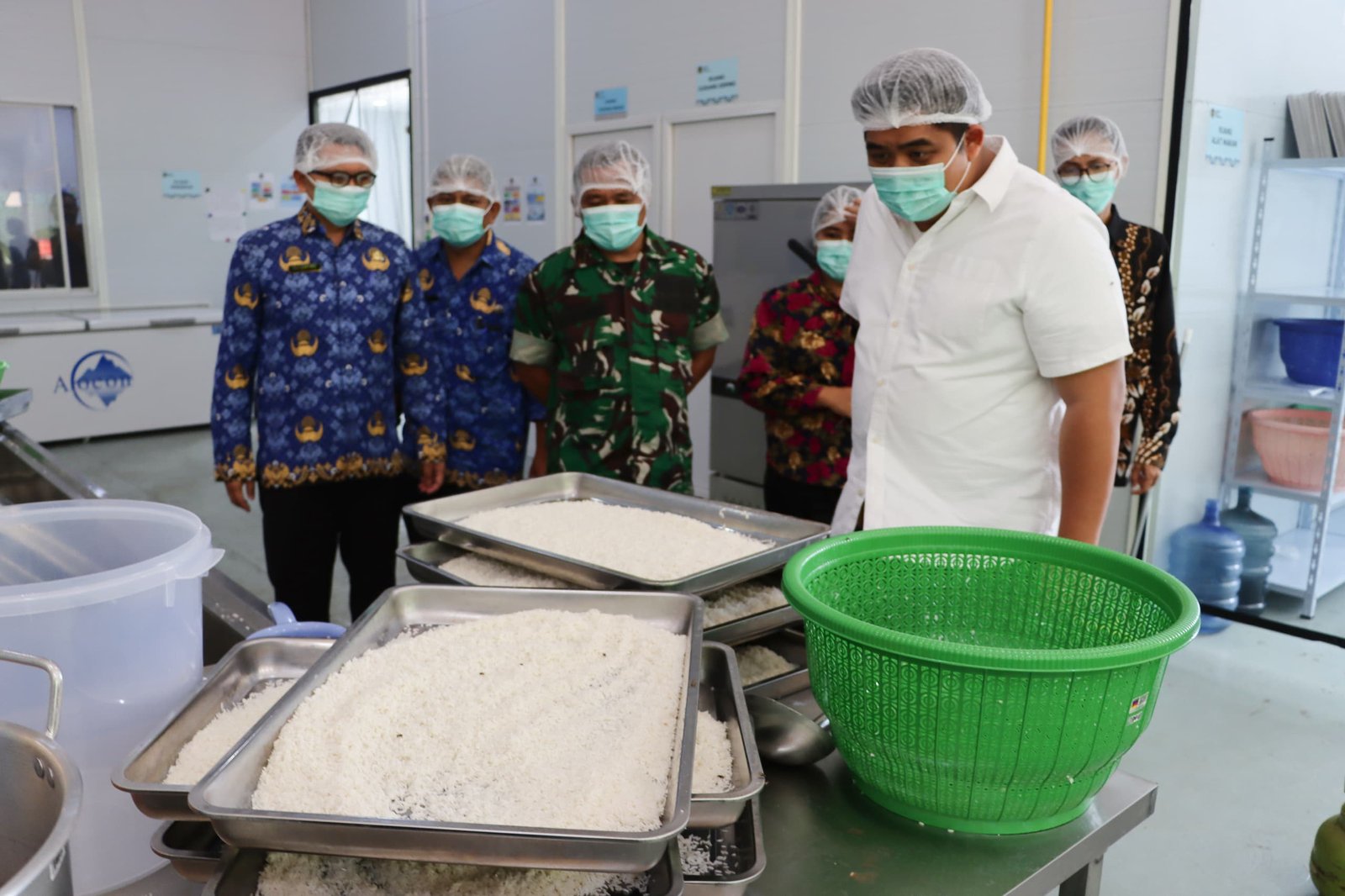 Dalam peninjauan, Bupati Roby menyisir setiap ruangan Dapur yang bermitra dengan Yayasan Menggapai Indonesia Sejahtera ini. Mulai dari ruang penyimpanan bahan pokok, ruang masak, ruang pengemasan hingga tempat pencucian.