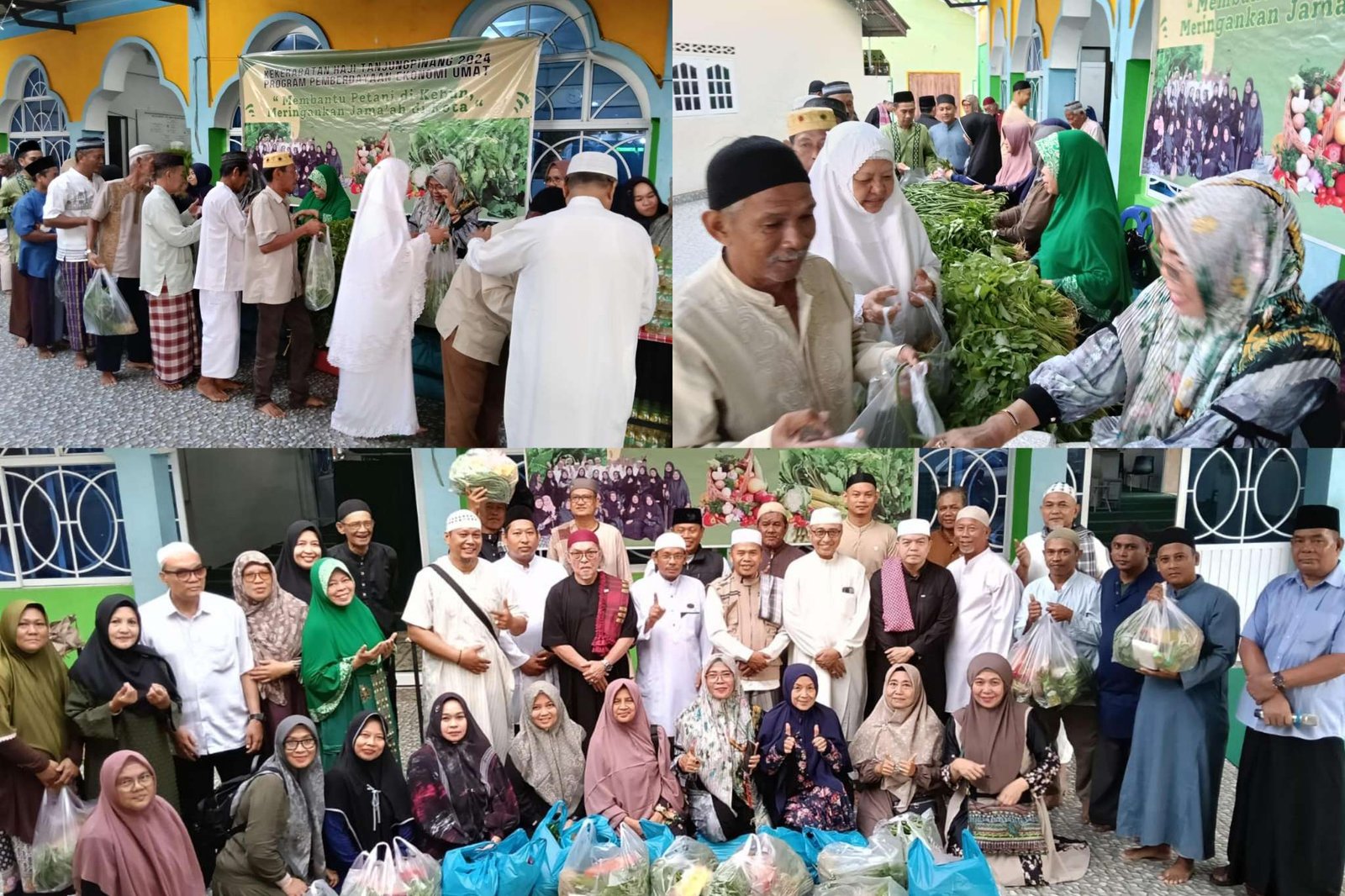 Kita beli sayur mayur dari petani, lalu kita kemas bersama dan bagikan gratis kepada jamaah di Kota Tanjungpinang. Semboyan kita sederhana: membantu petani di kebun, meringankan jamaah di kota,” jelasnya.