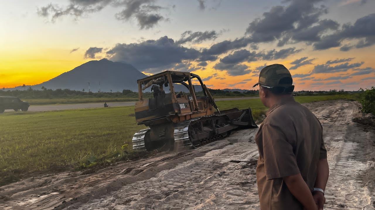 Komandan Lanud Raden Sadjad Marsekal Pertama TNI Onesmus Gede Rai Aryadi, S.E., M.M., M.Han., menurunkan alat berat untuk meratakan timbunan material pasir di lokasi tersebut.
