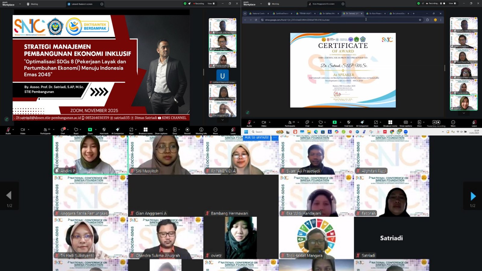 TANJUNGPINANG (HK) — Yayasan Penelitian dan Pengabdian Masyarakat Sisi Indonesia kembali menyelenggarakan National Conference on Research and Proceedings 2025 dengan tema “Accelerating SDGs Implementation in Indonesia towards a Golden Indonesia 2045.” Kegiatan nasional ini digelar secara daring melalui Zoom Meeting dan diikuti oleh para dosen, akademisi, mahasiswa, peneliti, serta masyarakat umum dari seluruh Indonesia, Sabtu (15/11).