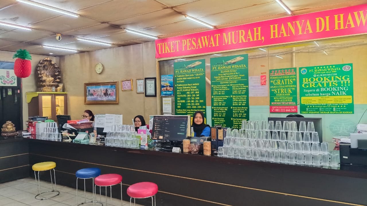 Meri, salah seorang pekerja di PT Mukakuning, sudah langganan beli tiket di Online Travel Hawaii.